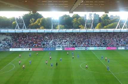 Piłkarze, a za nimi spora grupa kibiców, udali się do Krakowa. Na miejscu czekał beniaminek, czyli drużyna Cracovii. Gospodarze szybko wyszli na prowadzenie. W 14. minucie do bramki Jakuba Szumskiego trafił Krzysztof Danielewicz. Sebastian Steblecki oddał strzał, a młody bramkarz „zbił” futbolówkę przed siebie, z czego skrzętnie skorzystał Danielewicz. Nieco ponad dziesięć minut potrzebowali „Niebiesko-czerwoni”, żeby odpowiedzieć Cracovii. Artis Lazdins podał piłkę do rozpędzonego Pavola Cicmana, a ten z prawego skrzydła celnie dośrodkował na głowę Rubena Jurado. Hiszpan bez problemu pokonał Krzysztofa Pilarza.