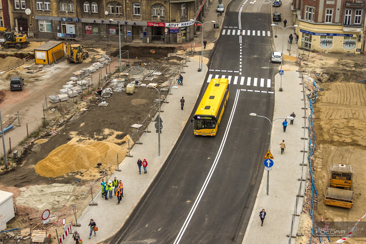Wykonawca informuje, że w związku z udrożnieniem przejazdu, w nocy z 6 na 7 października przywrócona została wcześniejsza organizacja ruchu na skrzyżowaniu ulic Zwycięstwa i Wyszyńskiego. Zlikwidowany został buspas w ciągu ul. Wyszyńskiego. Tym samym przywrócone zostały dwa pasy: dla skręcających w prawo do ul. Zwycięstwa i dla jadących prosto ul. Wyszyńskiego w kierunku placu Piłsudskiego. Wykonawca przypomina, że nadal wyłączone z ruchu są fragmenty ulic Fredry i Dubois, które stanowią część placu budowy.