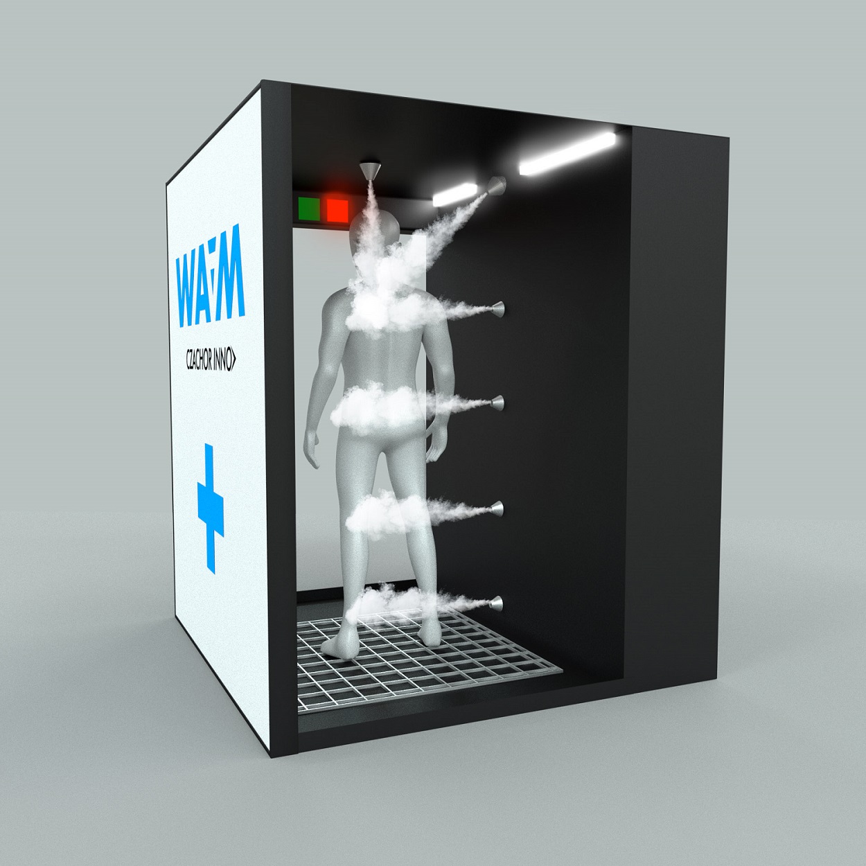 – Dzięki specjalnym dyszom będzie można zdezynfekować osobę w pełnym kostiumie, zmniejszając przy tym ryzyko zakażenia i przeniesienia wirusa. Brama będzie w pełni automatyczna z pakietem regulacji. Personel medyczny może wybierać czas odkażania oraz ma pełną kontrolę nad monitorowaniem procesu dezynfekcji za pomocą świetlnych elementów informacyjnych. Osoba, która będzie odkażana, będzie otrzymywać informację, co ma robić: czy ma podnieść ręce, obrócić się itp., tak aby dezynfekcji uległ cały kombinezon – wyjaśnia dr inż. M. Bogacka.