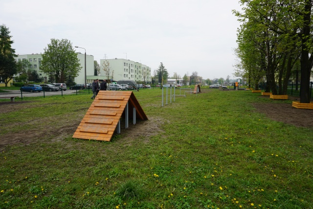 Ogrodzony wybieg dla psów o powierzchni 1200m2 powstał właśnie przy ul. Obrońców Pokoju. Na użytkowników placu czeka sześć nowych urządzeń – równoważnia, pochylnia dwustronna, obręcz do skoków, płotki do przeskoków, słupki do slalomu, równoważnia ruchoma.