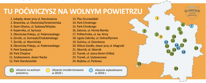 4 nowe siłownie plenerowe – w parku Starokozielskim, w parku Szwajcaria, w Żernikach i ligocie Zabrskiej – zostały oddane do użytku gliwiczan. W całym mieście są już 24 takie miejsca. Wszystkie cieszą się ogromnym zainteresowaniem.