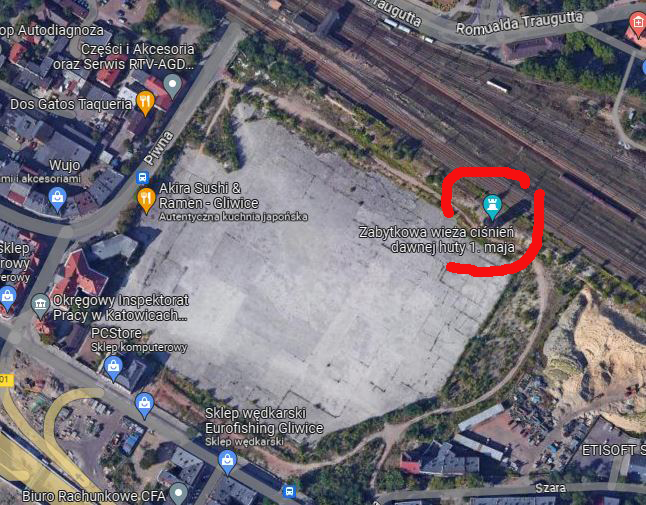 Mapa Google z zaznaczoną wieżą, w której znaleziono zwłoki
