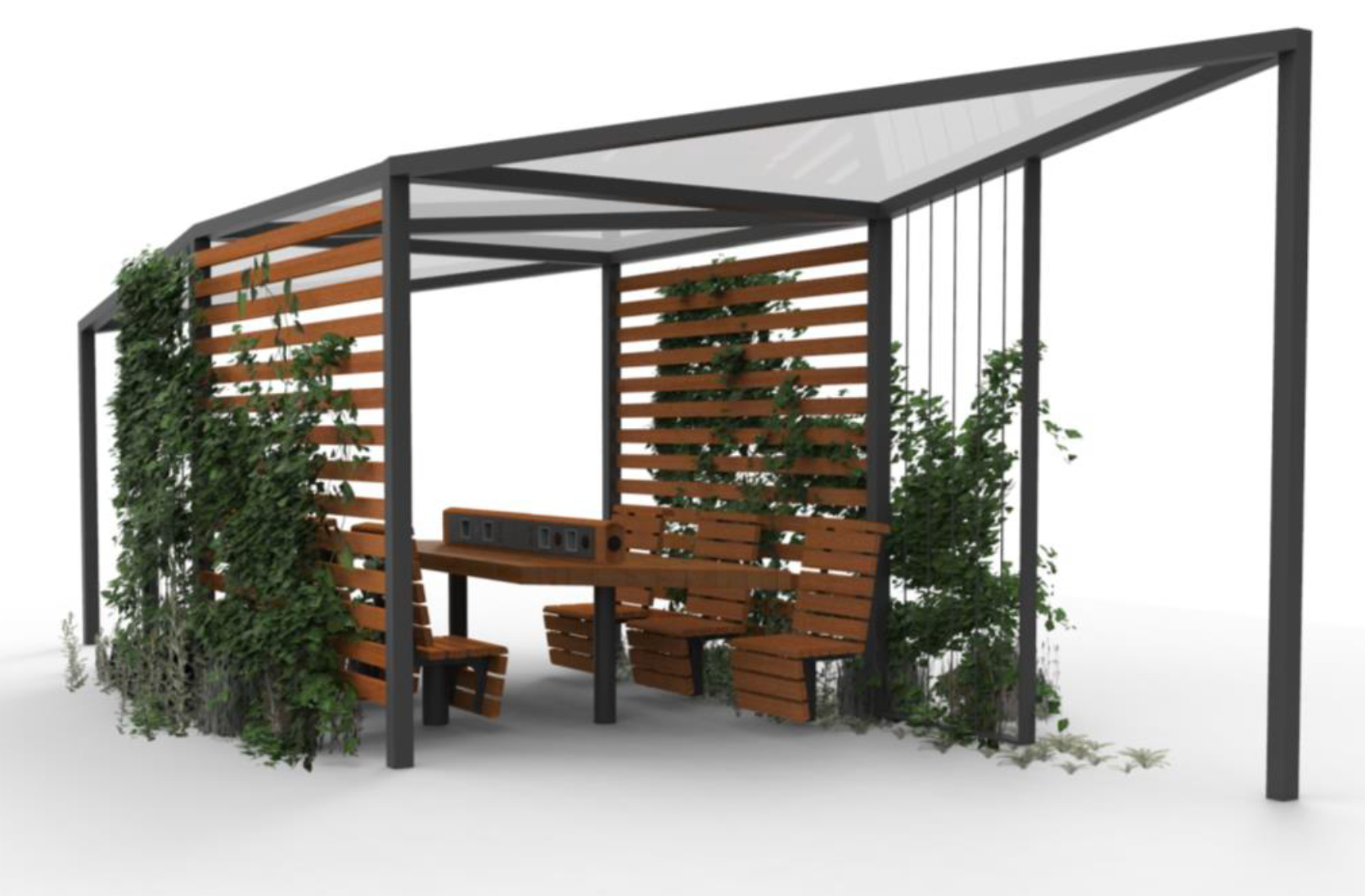 Będzie to miejsce do wspólnej pracy kilkunastu osób. Pojawią się stoły, ławki, zadaszenie i dostęp do internetu. Wszystko znajdzie się pod wiatą. Będą fotele obrotowe oraz stojaki rowerowe. Zamontowane zostaną również 3 hamaki.