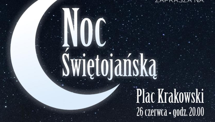 Tegoroczna Noc Świętojańska odbędzie się 26 czerwca – tradycyjnie już – na Placu Krakowskim. Początek imprezy – godz. 20.00. Wstęp jest wolny!