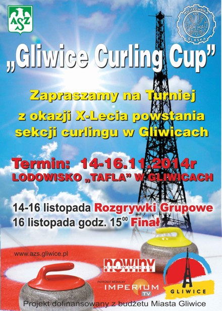 Od 14 do 16 listopada w Gliwicach na lodowisku TAFLA, przy ul. Akademickiej 26 zostanie rozegrany turniej z okazji 10-lecia powstania sekcji curlingu przy KŚ AZS Politechniki Śląskiej Gliwice.