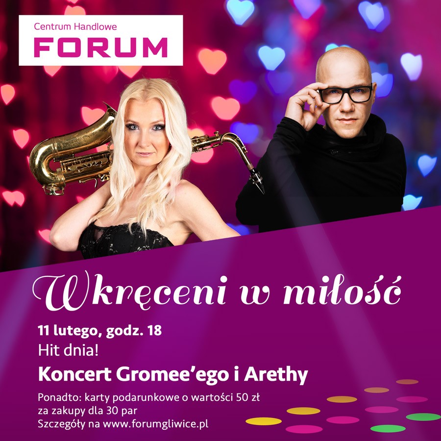 W sobotę, 11 lutego, w CH FORUM premiowani będą ponadto ci, którzy zrobią zakupy za minimum 200 zł i okażą za nie paragon w punkcie informacyjnym. 30 par, które zgłoszą się najszybciej, otrzyma karty podarunkowe o wartości 50 zł.