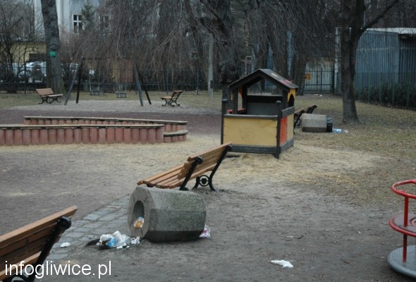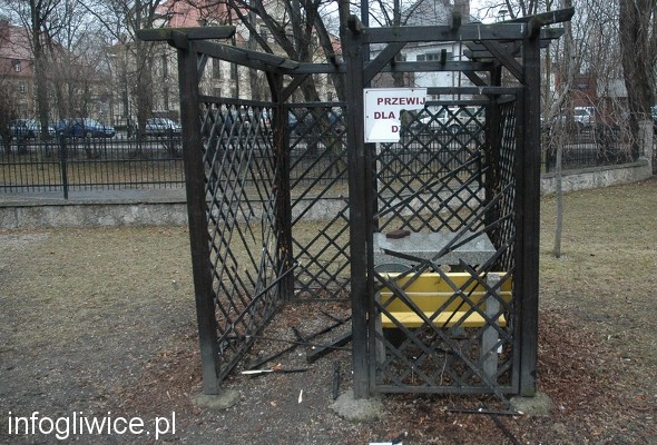 Plac zabaw w Parku Chopina został zdemolowany.