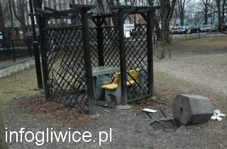 Do zdarzenia doszło 19 marca około godziny 20.00. Wandale w wieku 17 – 19 lat połamali pergole przewijaka dla niemowląt, złamali tablicę informacyjną, powyrywali kostki typu „puzzle” z nawierzchni placu zabaw, stalową część karuzeli, zniszczyli także listwę ławki.