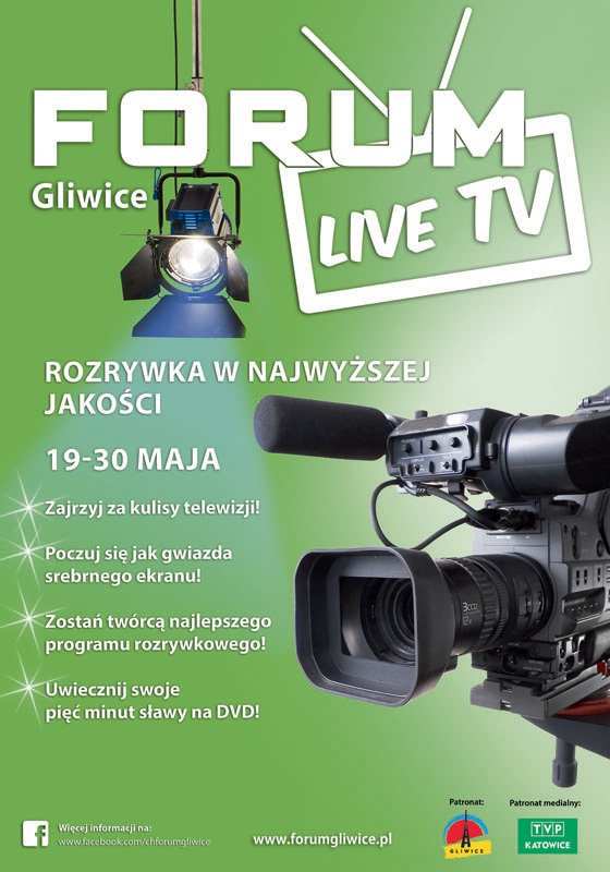 Każdy będzie mógł w maju zakręcić się koło warsztatów telewizyjnych w CH FORUM i nakręcić to, co go kręci. Pomogą w tym ludzie na co dzień związani z telewizją.