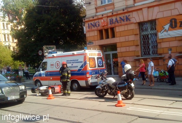 Kolejny wypadek z udziałem jednośladu miał miejsce na ul. Zwycięstwa, w pobliżu urzędu miejskiego. Zdjęcia i informację przysłał nam Czytelnik (foto poniżej). Dziękujemy!