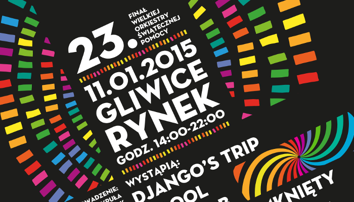 Scena 23. Finału WOŚP tym razem stanie na Rynku. Do listy zespołów, o występie których informowaliśmy w listopadzie (Abradab, Oddział Zamknięty i DJ C-Bool), dołączył reggaeowy Django’s Trip. Grać będziemy od godz. 14 do 22. W tym czasie odbędą się również licytacje, pokazy, konkursy i zabawy dla całych rodzin. Na specjalnie przygotowanych stoiskach swoją ofertę zaprezentują gliwickie organizacje pozarządowe.