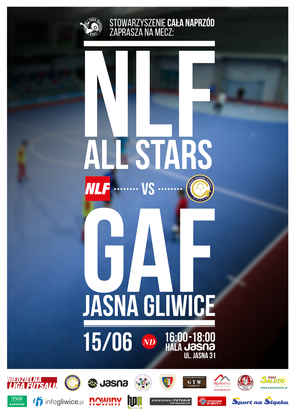 Zakończenie drugiego sezonu Niedzielnej Ligi Futsalu uczcimy Wielkim Meczem, w którym zmierzą się zawodnicy All Stars NLF i GAF Jasna Gliwice.