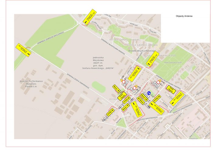 W pierwszej kolejności roboty drogowe będą prowadzone na odcinku od wjazdu do Jednostki Wojskowej za ul. Płowiecką. Drogowcy pojawią się w tamtym rejonie 1 sierpnia, o godz. 7.00. Zamknięte zostaną wloty ulic: Płowieckiej, Karolinki i Mieszka I-go. Objazdy będą prowadzone ulicami: Andersa, Styczyńskiego, Daszyńskiego, Sowińskiego, a także ulicą Andersa, Okulickiego i Sowińskiego.