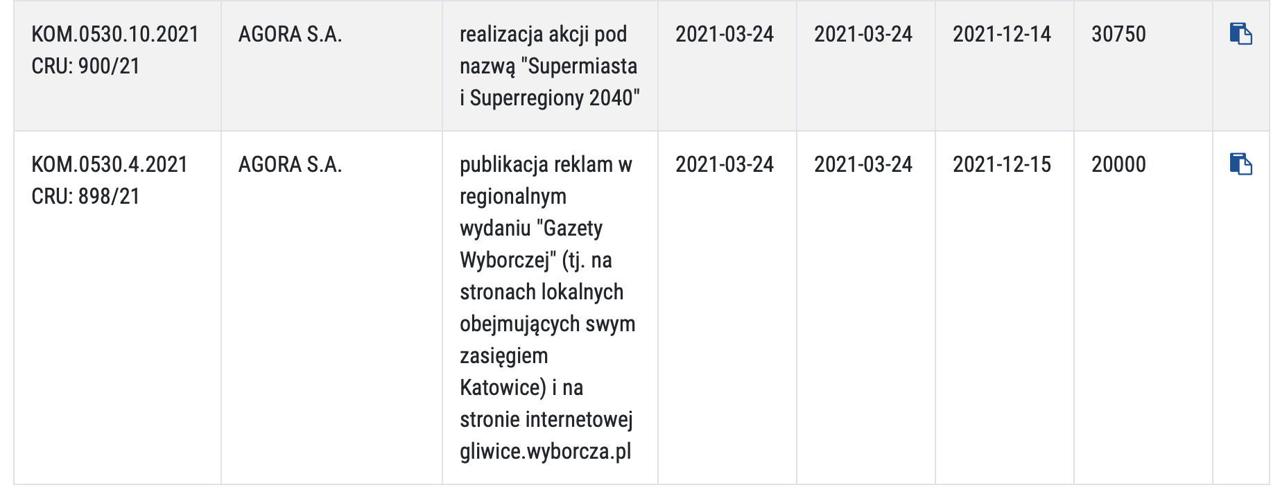 Umowa jest publicznie dostępna w rejestrze umów na stronie UM Gliwice.