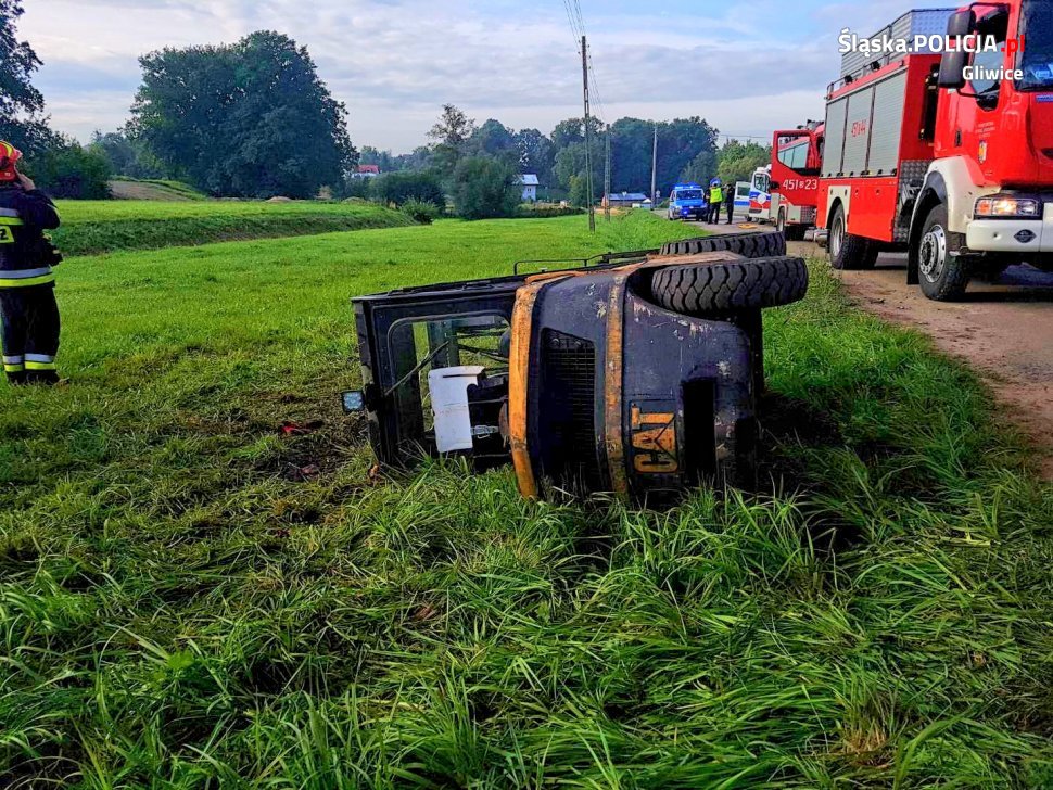 Policjanci ustalają okoliczności wypadku, do jakiego dziś rano doszło w Łanach Wielkich koło Sośnicowic. Wszystko wskazuje, że kierujący wózkiem widłowym mężczyzna stracił panowanie nad maszyną i wtedy wjechał do rowu – został przygnieciony.