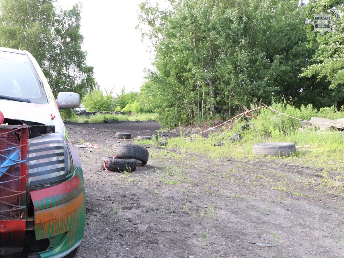Groźny wypadek podczas Wrak Race w Gliwicach – kobieta trafiona kołem, przetransportowana śmigłowcem do szpitala.