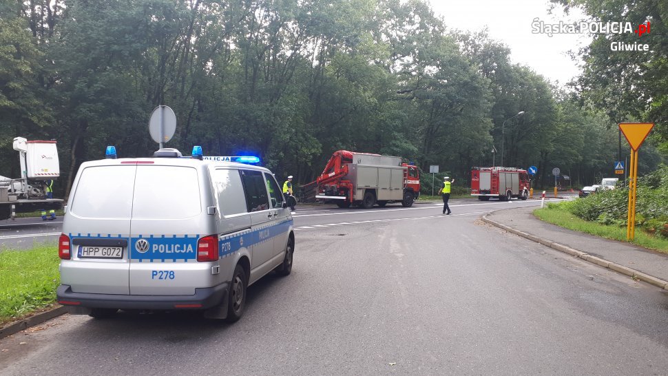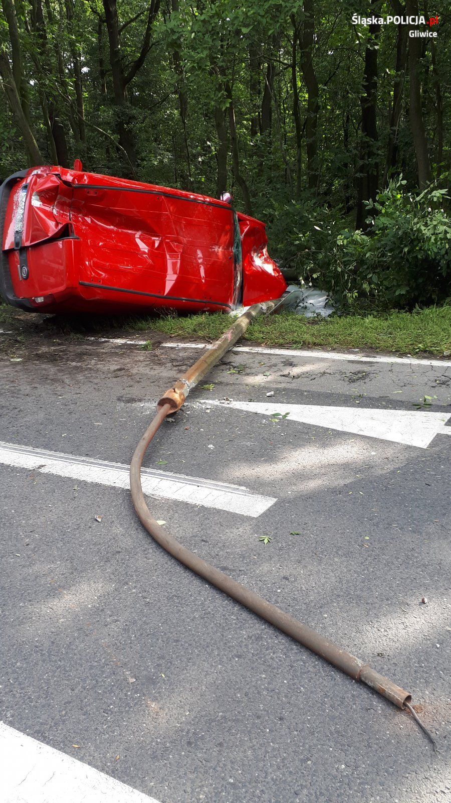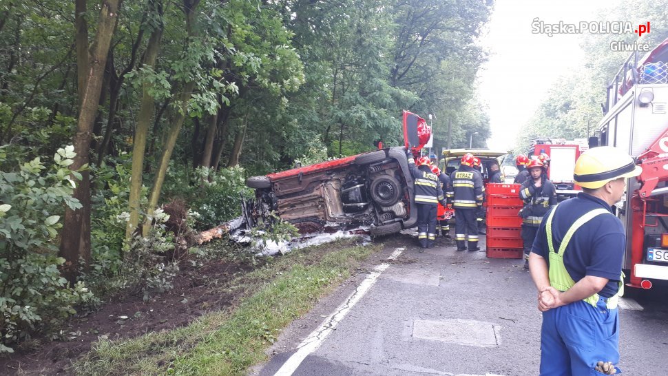 W sobotę, 14 lipca około godziny 6.30 kierujący dostawczym mercedesem 60-latek, wyjeżdżając z ulicy Przyszowskiej w Łabędach, wymusił pierwszeństwo przejazdu na poruszającym się ul. Toszecką w kierunku Pyskowic 42-latku, jadącym fiatem doblo. Kierowca fiata, chcąc uniknąć zderzenia, gwałtownie odbił kierownicą, wjechał do rowu, ściął latarnię i przydrożne drzewo. Obrażeń doznał on i jego pasażer. 60-latkowi z mercedesa zatrzymano uprawnienia. Okoliczności oraz przyczyny wypadku zostaną dokładnie zbadane podczas prowadzonego w sprawie dochodzenia.