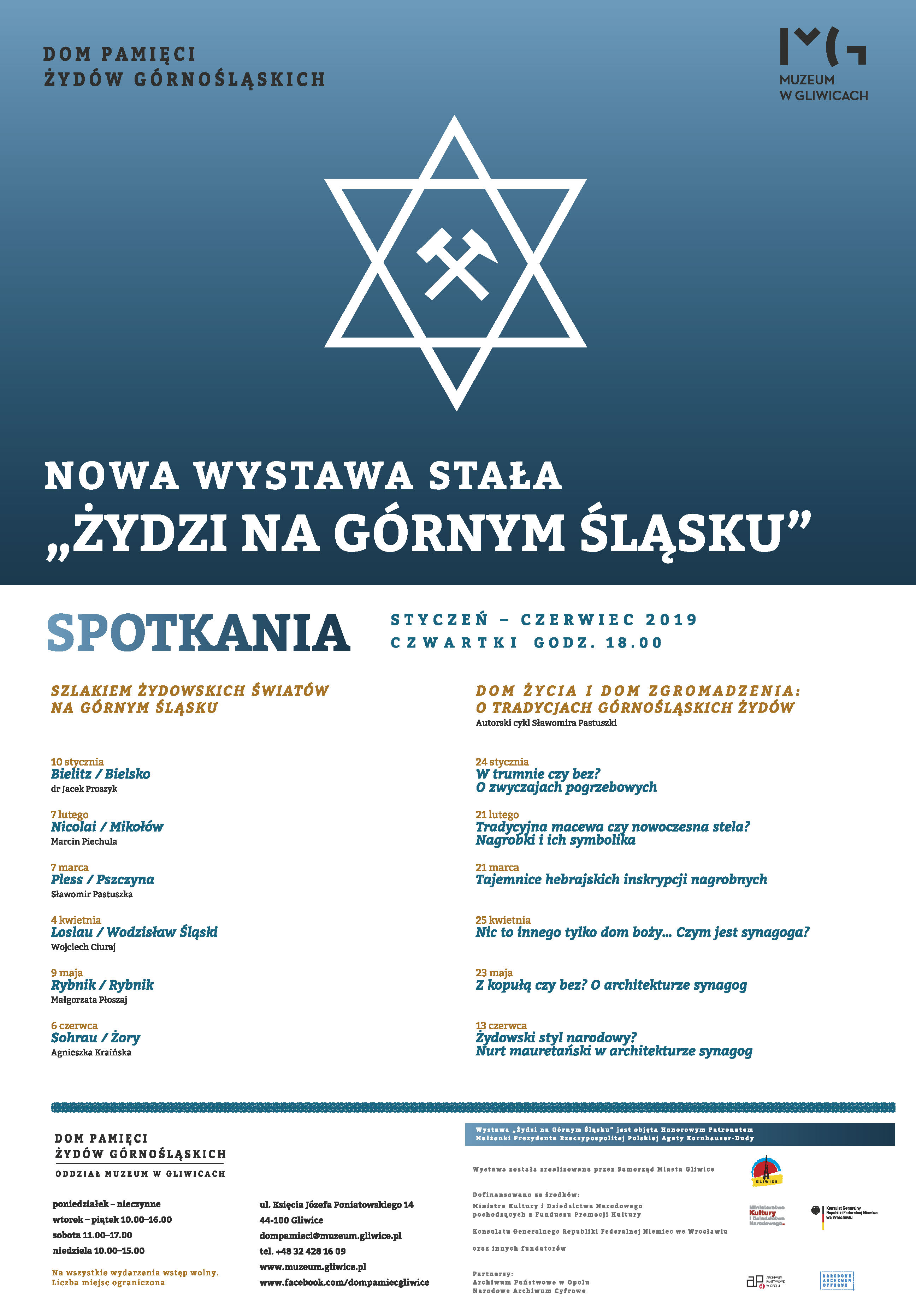 Prezentacja, wizualna i tekstowa, wszystkich synagog górnośląskich – w większości już nieistniejących – oraz cmentarzy żydowskich znajdujących się na terenie regionu. Życiorysy i dorobek kilkudziesięciu najbardziej znaczących przedstawicieli żydowskiej społeczności: przemysłowców, ludzi nauki, kultury, a także najwybitniejszych rabinów górnośląskich. To tylko wybrane wątki, jakie przybliży z dawna oczekiwana wystawa stała Żydzi na Górnym Śląsku. Od 14 grudnia ekspozycja będzie dostępna dla publiczności w oddziale Muzeum w Gliwicach – Domu Pamięci Żydów Górnośląskich. Wystawę honorowym patronatem objęła Małżonka Prezydenta Rzeczypospolitej Polskiej, Agata Kornhauser-Duda.