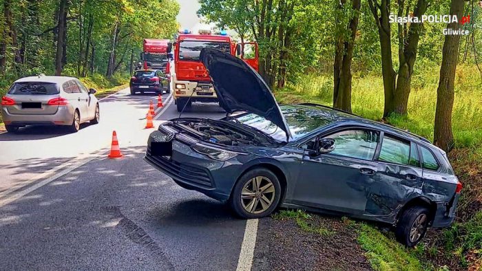 „Z kolei przed godziną 13.00 w Paniówkach przy ul. Zabrskiej kierujący fiatem ducato zjechał nagle na przeciwległy pas ruchu i uderzył w prawidłowo jadącego volkswagena passata, który, wskutek wytrącenia z toru jazdy, wjechał do przydrożnego rowu. Okazało się, że kierujący dostawczakiem 49-letni mieszkaniec Małopolski jest kompletnie pijany – alkomat wykazał ponad 3,4 promila alkoholu. Nie posiadał też uprawnień do kierowania. Samochody uczestniczące w zdarzeniu, szczególnie osobówka, zostały kompletnie zniszczone” – informuje policja.