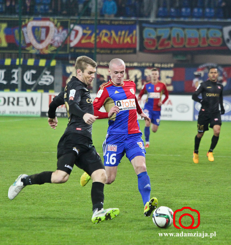 0-1 – Kiedy wydawało się, że bliżej zdobycia bramki są gospodarze, Deniss Rakels ładnym uderzeniem „nożycami” pokonał Jakuba Szmatułę.