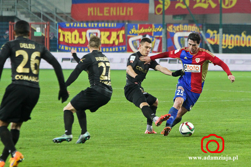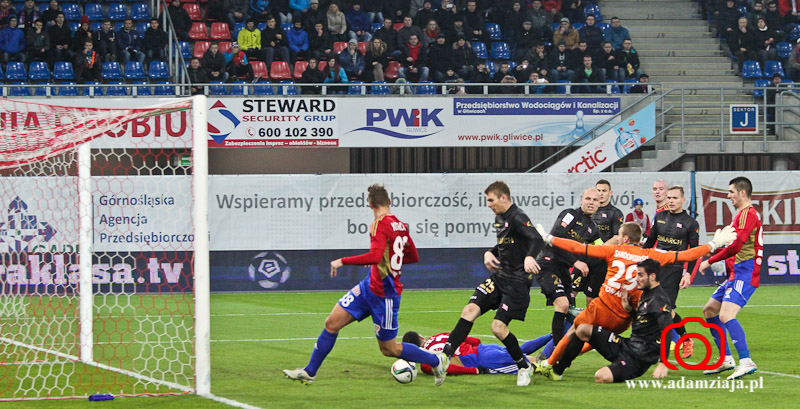 1-1 – Już pierwsza połowa miała się kończyć, a nagle… po dobrym dośrodkowaniu piłki w pole karne krótkie zamieszanie i ta wpadła do siatki! Ojcem sukcesu był Uros Korun, ale ostatni piłkę dotknął Rymaniak