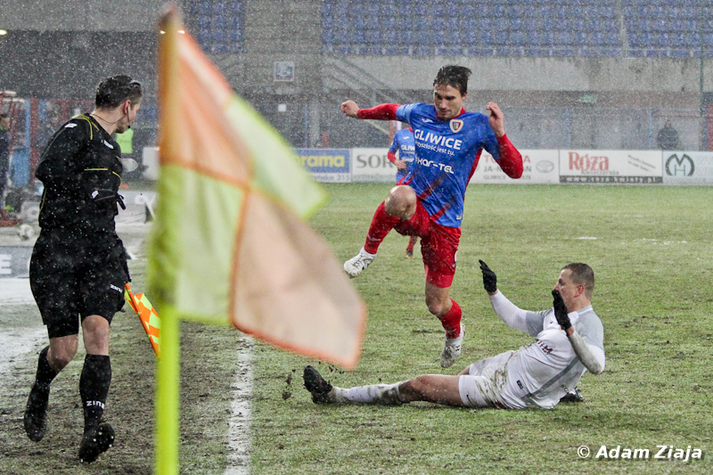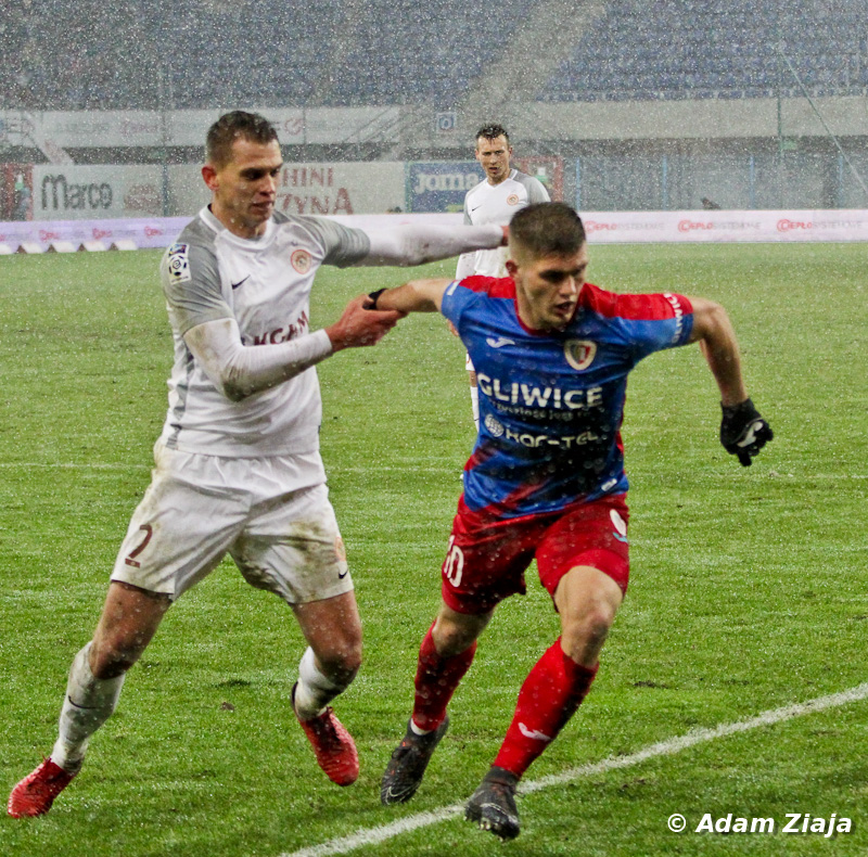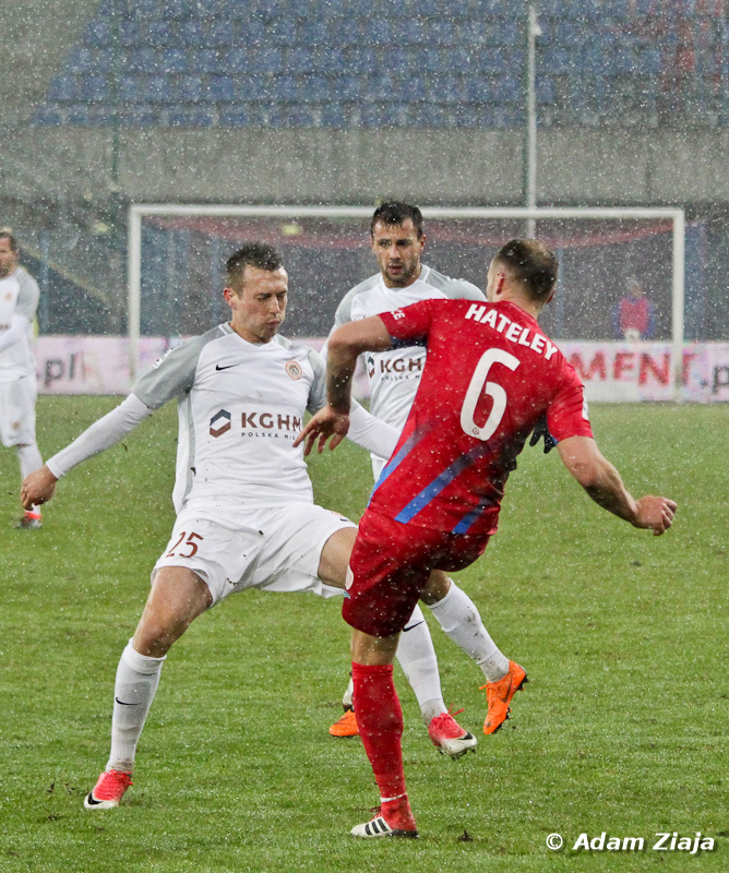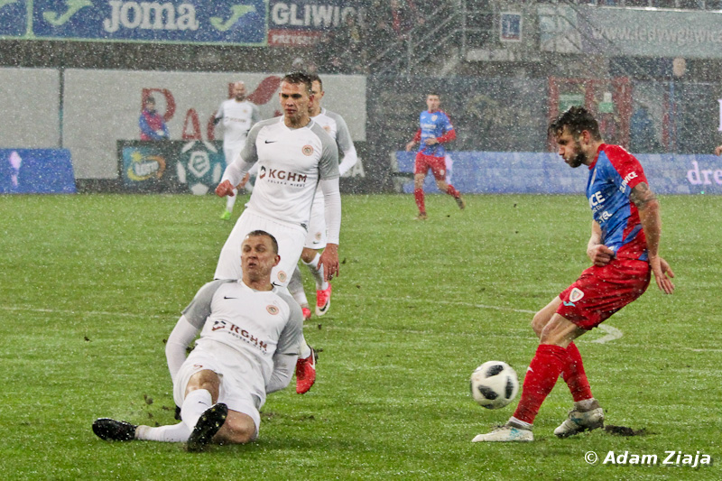 – Pierwszą groźną sytuację stworzyli sobie Miedziowi. Goście zaatakowali w 11. minucie, ale Jakub Szmatuła dobrze wybronił uderzenie głową Alana Czerwińskiego. W 23. minucie Tom Hateley strzelał zza pola karnego, jednak minimalnie przestrzelił.