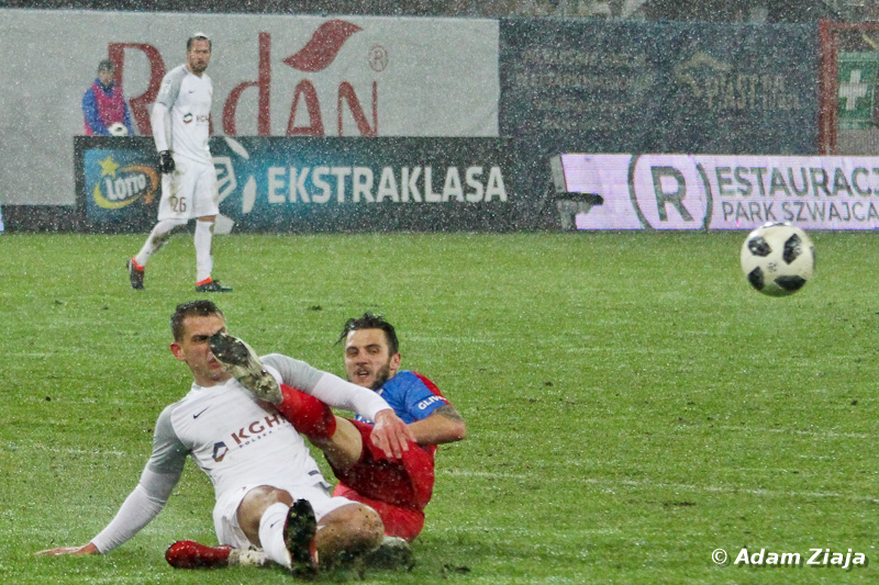 Drugą połowę od mocnego uderzenia mogli rozpocząć Niebiesko-Czerwoni. W 57. minucie Gerard Badia zagrywał ze skrzydła do Tomasza Jodłowca, a ten zdecydował się na strzał z dystansu, ale piłka przeleciała nad poprzeczką.