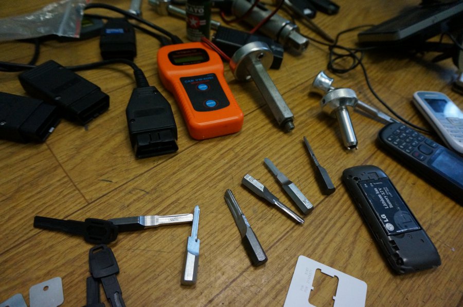 Poniżej zdjęcia przedmiotów zabezpieczonych u przestępcy zatrzymanego właśnie w wyniku pracy operacyjnej. Mężczyzna trudnił się kradzieżami samochodów. Został już aresztowany. Można założyć, że w tym tygodniu podobne przedmioty zostaną znalezione u innych podejrzanych. Z uwagi na ograniczenia związane z tzw. dobrem śledztwa o 95 procentach tego typu zatrzymań nie informujemy. Im bardziej skomplikowana sprawa, tym większą poufność należy zastosować.