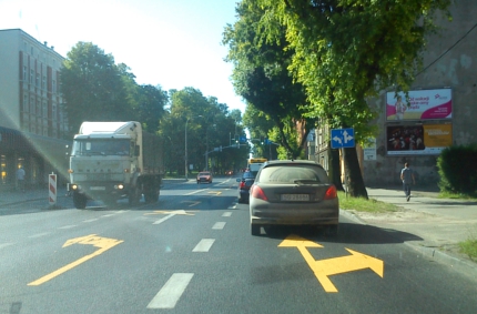 Kierowcy przyzwyczajeni są, że jechać na wprost można z lewego pasa, a w prawo z prawego. Do tej pory był zakaz skrętu w lewo (w Świętojańską). W ostatnich dniach wprowadzono tam nowe oznakowanie. Od teraz jazda na wprost odbywa się z prawego pasa. Można także skręcać w lewo. Kierowcy byli dziś rano nieco zdezorientowani, jednak w ciągu kilku najbliższych dni przyzwyczają się pewnie do nowych zasad ruchu w tym miejscu.