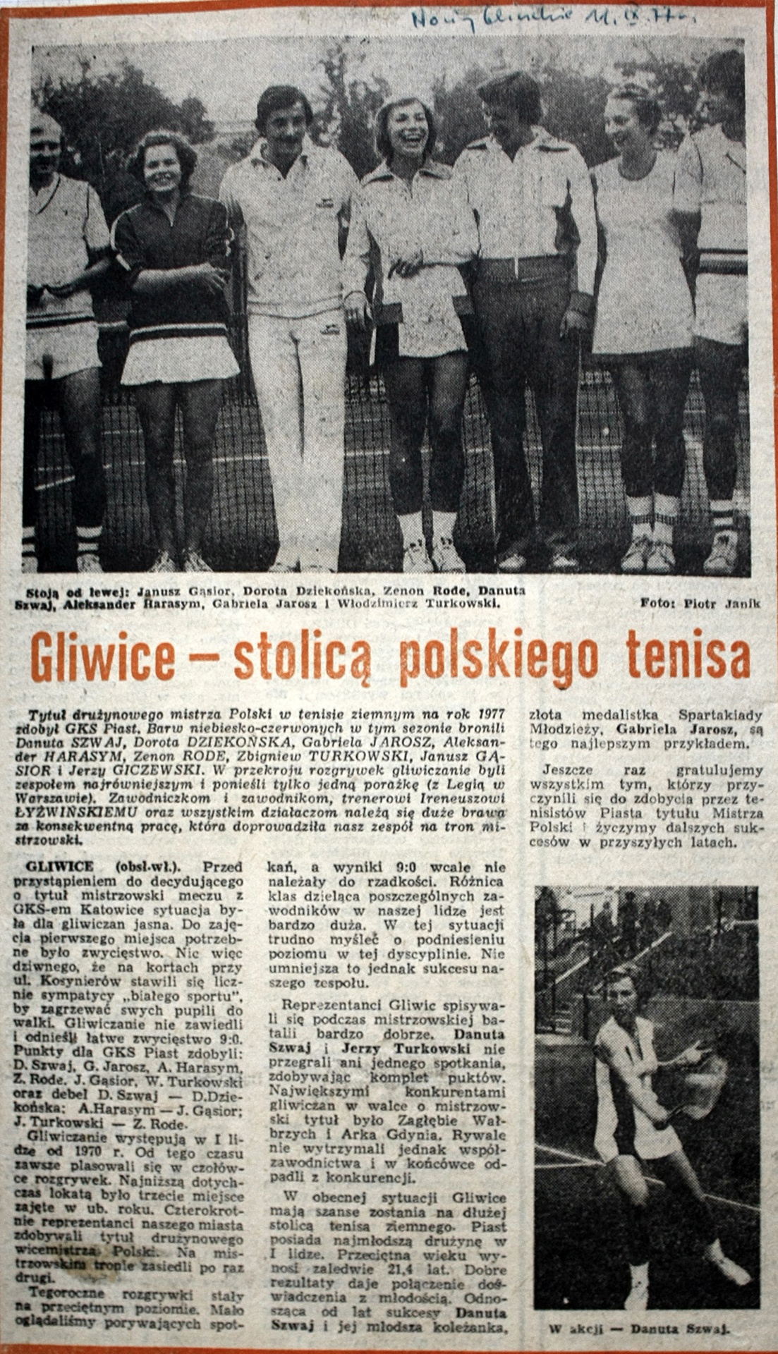 Szczególna estymą darzę GKS „Piast” sekcja szermiercza w której latach świetności miałem przyjemność trenować jako młodzik i brać udział w spontanicznym powitaniu przez gliwiczan mistrza olimpijskiego roku 1964- Egona Franke!!To był wyjątkowy jak na te czasy przemarsz mieszkańców z Egonem na Ich ramionach bez zezwolenia władz -od dworca PKP do klubu Hutnik.