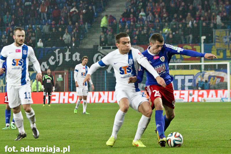 Historyczna wygrana! Piast Gliwice pokonał Lecha Poznań po trafieniach Kamila Wilczka, Bartosza Szeligi i Tomasza Podgórskiego.