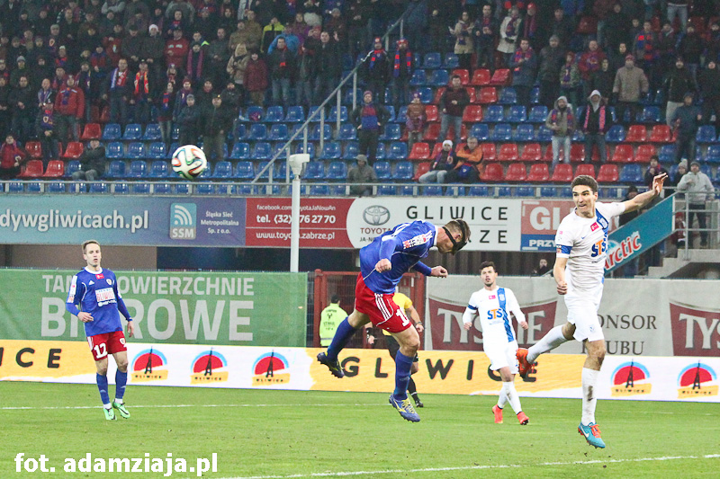 0-1 – Fatalnie mecz rozpoczęli gliwiczanie… Już w trzeciej minucie Alberto Cifuentesa pokonał Szymon Pawłowski, dobijając piłkę odbita od poprzeczki. Hiszpański bramkarz był bez szans.