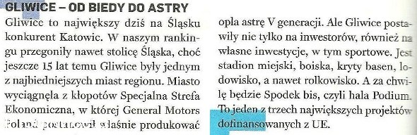 Tygodnik kierowany przez Tomasza Lisa docenił prezydenta Gliwic za ogromne inwestycje w strefie ekonomicznej, za wybudowane ostatnio nowoczesne pływalnie m.in. Neptuna w Sośnicy i Olimpijczyka na os. Kopernika.